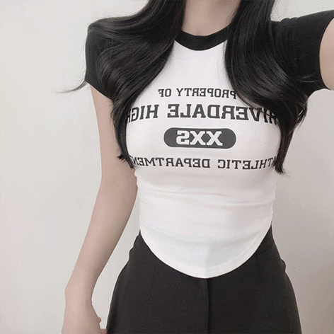 [꾸안꾸아이템]바푸 배색 크롭 라운드 티