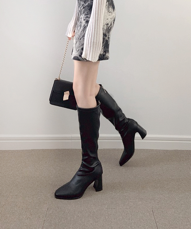 [당일출고/스퀘어코/페미닌부츠] 다리 길어보이는 사각코 가죽 롱 & 앵클 부츠 숏부츠 (7cm) [구두 힐 빅사이즈 하비 결혼식 통굽 키높이 봄신발 면접 털신 하객룩 ]