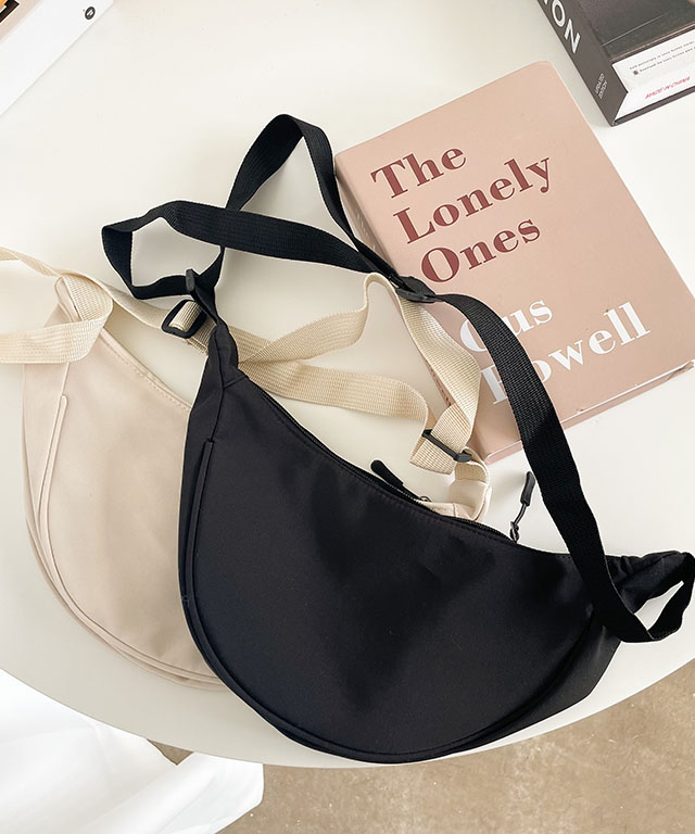 [당일발송] 미니 반달 크로스 가방 무지 캔버스 에코 데일리백