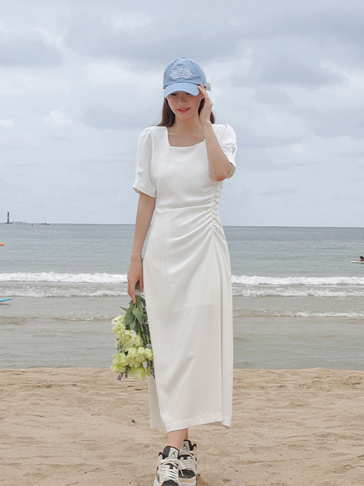 [웨딩룩] 슈델킨 셔링 스퀘어넥 롱 원피스