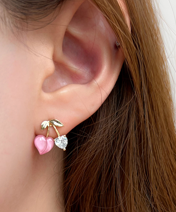 체리 큐빅 실버 은침 귀걸이