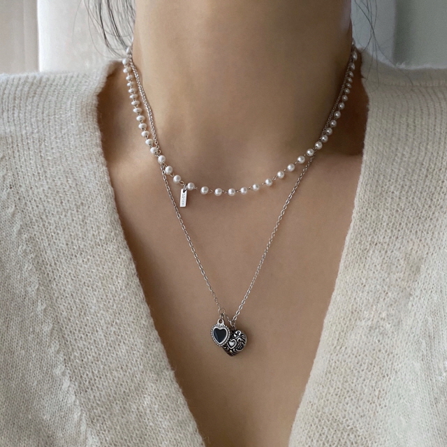 acerrojo pi 써지컬 진주 비즈 하객 하트 오닉스 목걸이(하트목걸이 단품)