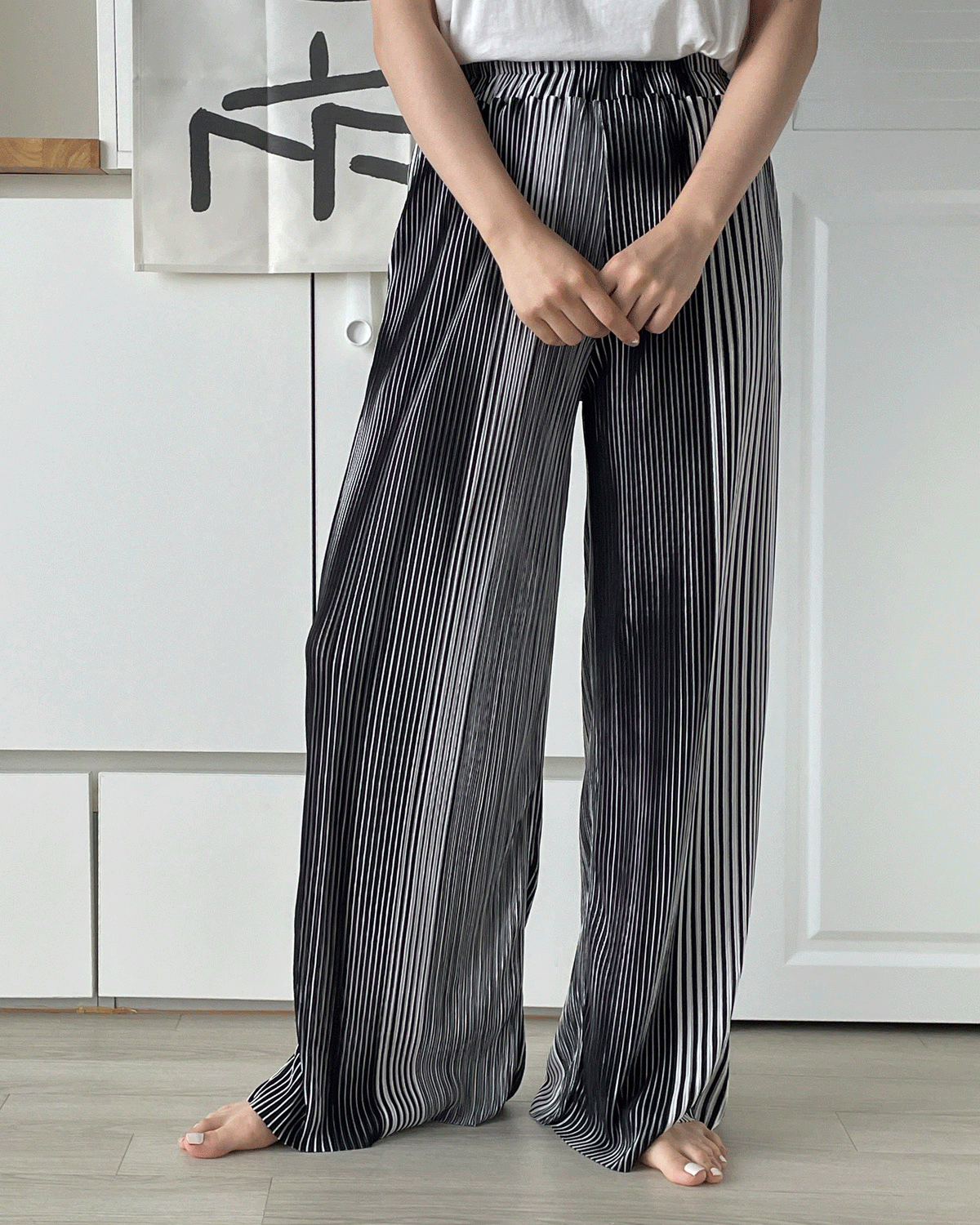 [~3XL/빅사이즈] 패턴 플리츠 와이드 팬츠 [ 플리츠바지 주름팬츠 주름바지 프린팅팬츠 여름바지 와이드 통바지 와이드핏 임부복 빅사이즈 큰사이즈 스트라이프 허리밴딩 긴바지 ]