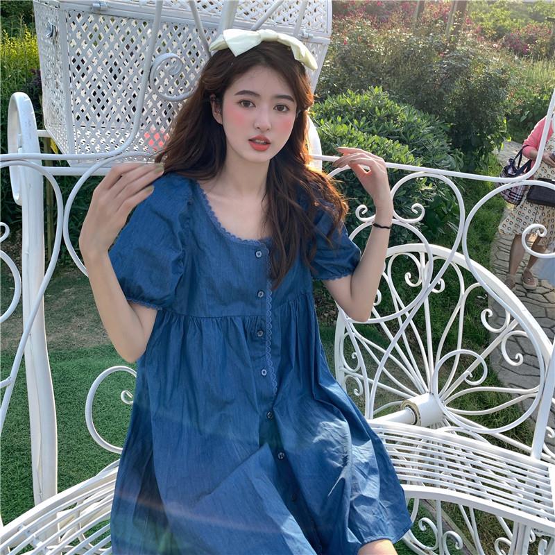 여름 스퀘어넥 벌룬 소매퍼프 셔링 루즈핏 미니원피스 러블리 바캉스 데일리룩