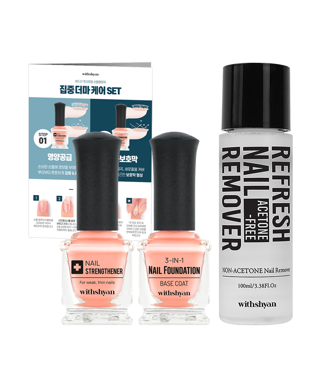 화장품법에 따라 기재, 표시하여야 하는 모든 성분네일스트랭쓰너; 부틸아세테이트,에틸아세테이트,나이트로셀룰로오스,아디픽애씨드/네오펜틸글라이콜/트리멜리틱안하이드라이드코폴리머,아이소프로필알코올,아세틸트라이부틸시트레이트,수크로오스아세테이트아이소부티레이트.스테아랄코늄벤토나이트,실리카다이메칠실릴레이트,아크릴레이트코폴리머,다이프로필렌글라이콜다이벤조에이트,N-부틸알코올,향료,옥토크릴렌,폴리비닐부틸알,시트릭애씨드,하이드롤라이즈드케라틴,하이드롤라이즈드옥수수단백질,하이드롤라이즈드콩단백질,티타늄디옥사이드(CI 77891),황색4호(CI 19140),적색201호 (CI 15850),적색202호 (CI 15850) 3-IN-1네일 파운데이션: 부틸아세테이트,에틸아세테이트,나이트로셀룰로오스,아디픽애씨드/네오펜틸글라이콜/트리멜리틱안하이드라이드코폴리머,아이소프로필알코올,하이드레이티드실리카,아세틸트라이부틸시트레이트,수크로오스아세테이트아이소부티레이트,스테아랄코늄벤토나이트,실리카다이메칠실릴레이트,아크릴레이트코폴리머,다이프로필렌글라이콜다이벤조에이트,N-부틸알코올,옥토크릴렌,폴리비닐부틸알,시트릭애씨드,하이드롤라이즈드케라틴,칼슘판토테네이트,티타늄디옥사이드(CI 77891)