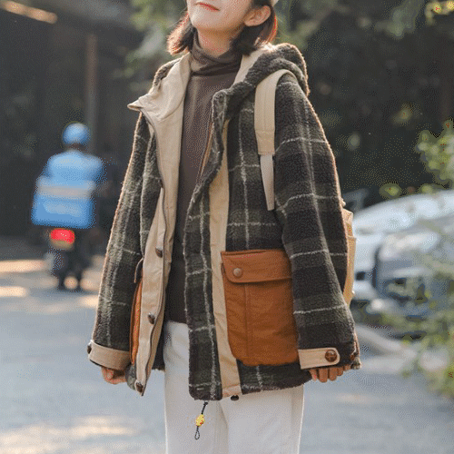 [겨울신상/겨울자켓] 레트로 아메카지 체크 하프코트 플레이트 버튼 겨울 후드 집업 뽀글이 양털 자켓 울 면 반코트 데일리룩 캠퍼스룩 귀여운 아우터 코디