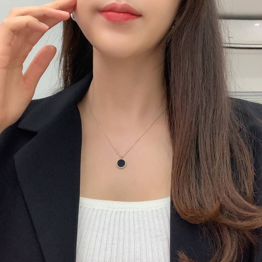 925실버 블랙 오닉스 코인 라운드 볼드 체인 은 목걸이 실버 로즈골드