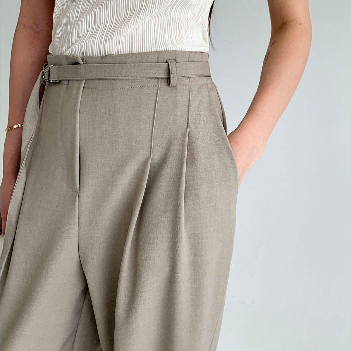 피마또 뒷밴딩 스트랩 투핀턱 와이드 롱 슬랙스