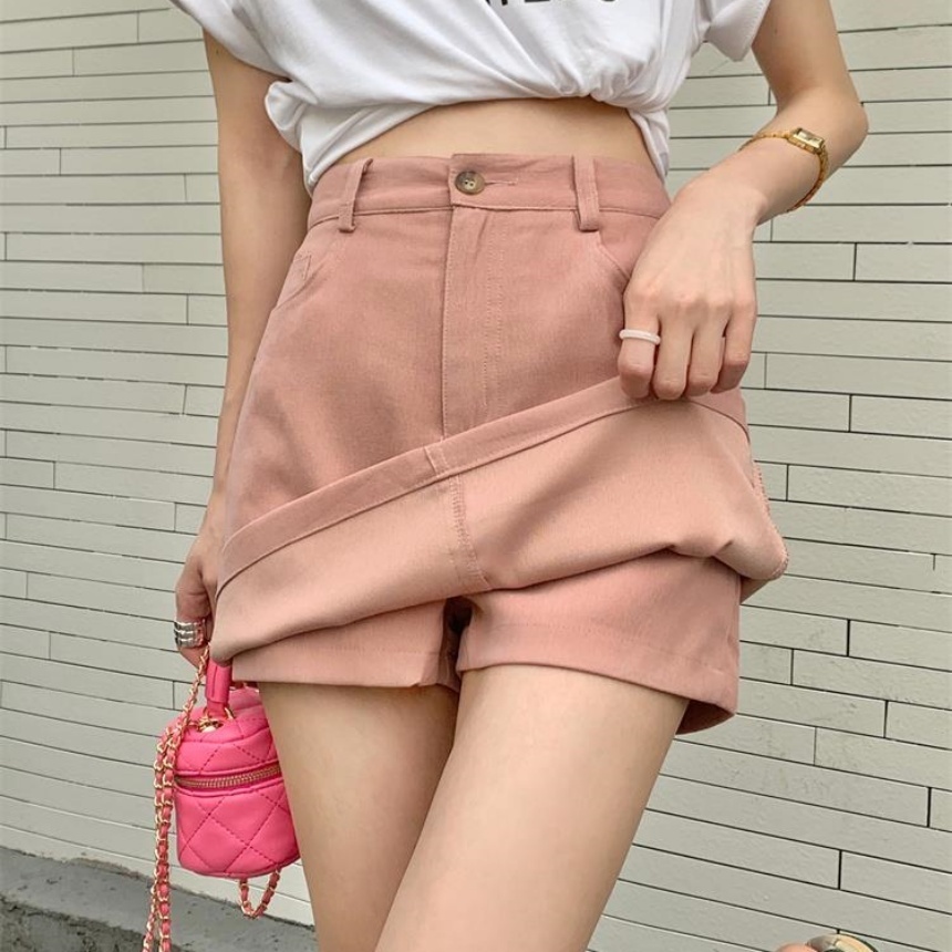 [라인대박/하이웨이스트 치마바지/하비언니들 추천]여름 속옷노출 방지 A라인 슬림핏 날씬핏 포켓 미니 숏 3부 핫팬츠 페이크 스커트 치마/핑크 블랙/데일리룩 심플룩 데이트룩 코디
