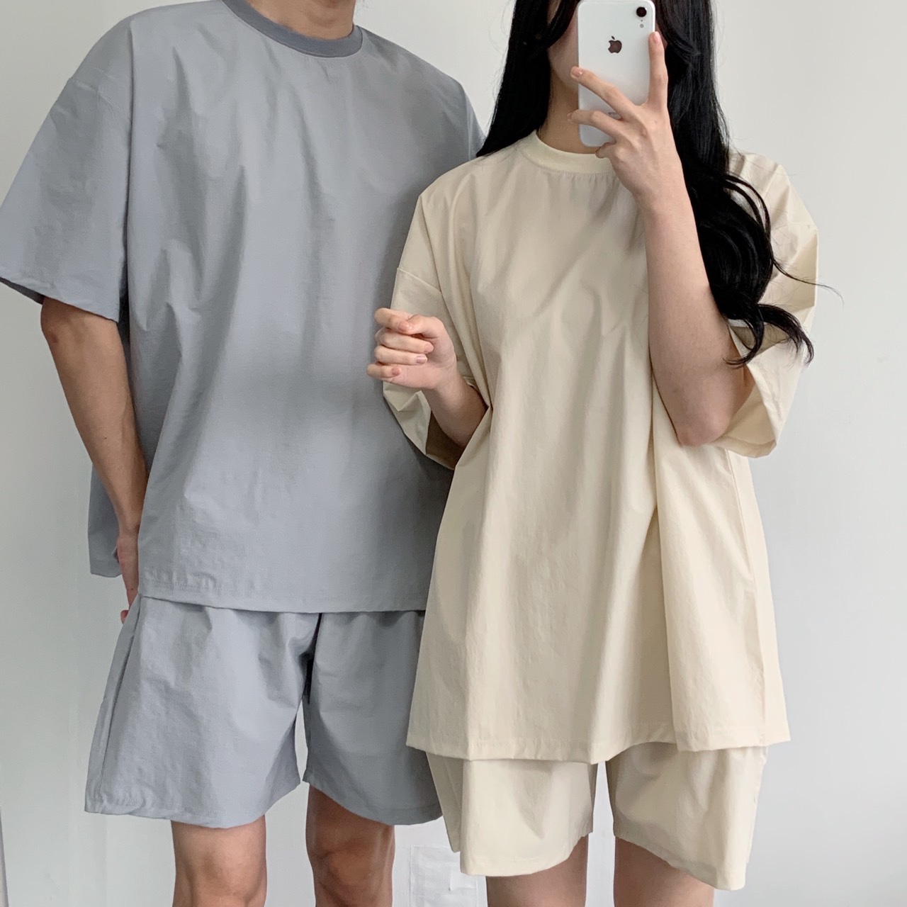 [1+1할인/한정수량/특가세일/커플룩강추/폭풍할인가]커플룩강추!! 스판 아노락 반팔 밴딩 반바지 set