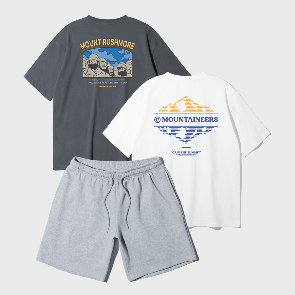 [3PACK] 앨빈클로 마운틴 러쉬모어 프린팅 반팔티 3종 패키지