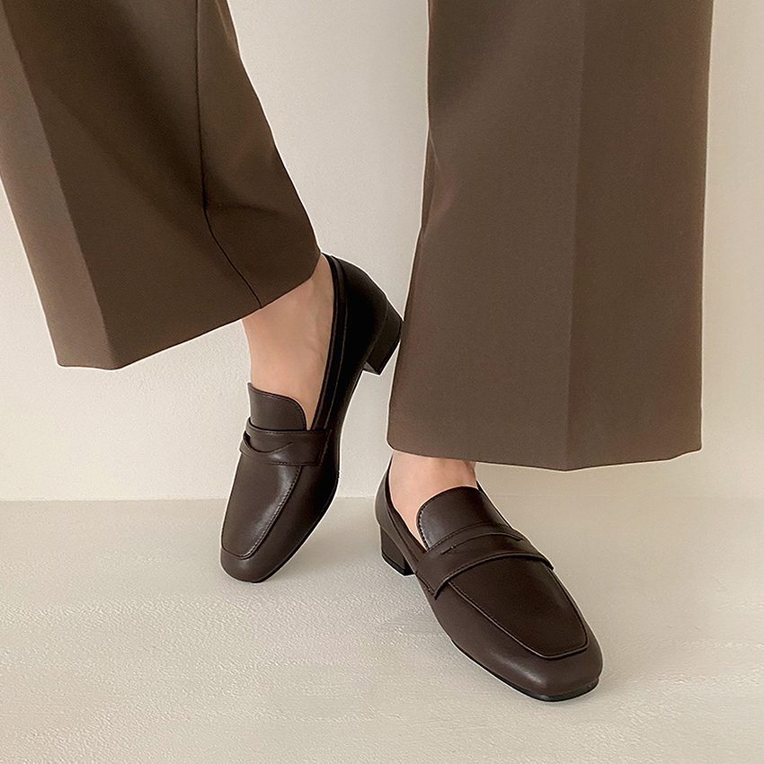 [단독] 🌻7만족돌파/MADE🌻 로엔디 소가죽 스웨이드 통굽 힐 페니 로퍼 미들 굽 스퀘어 구두 3cm (하객룩,데이트,벚꽃룩,봄,소개팅,면접,출근룩)