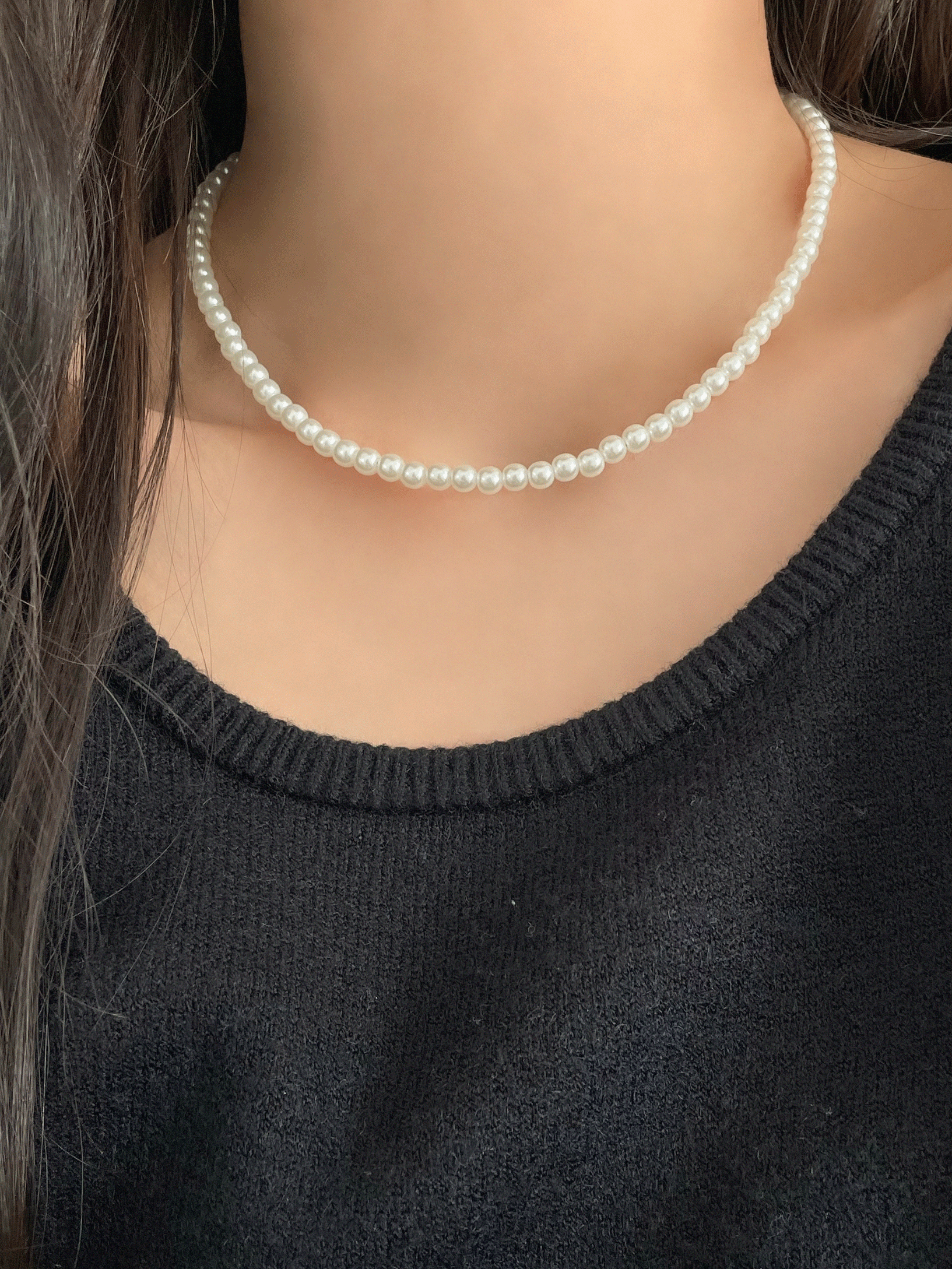 5mm 크림 동글 진주 목걸이(2color)