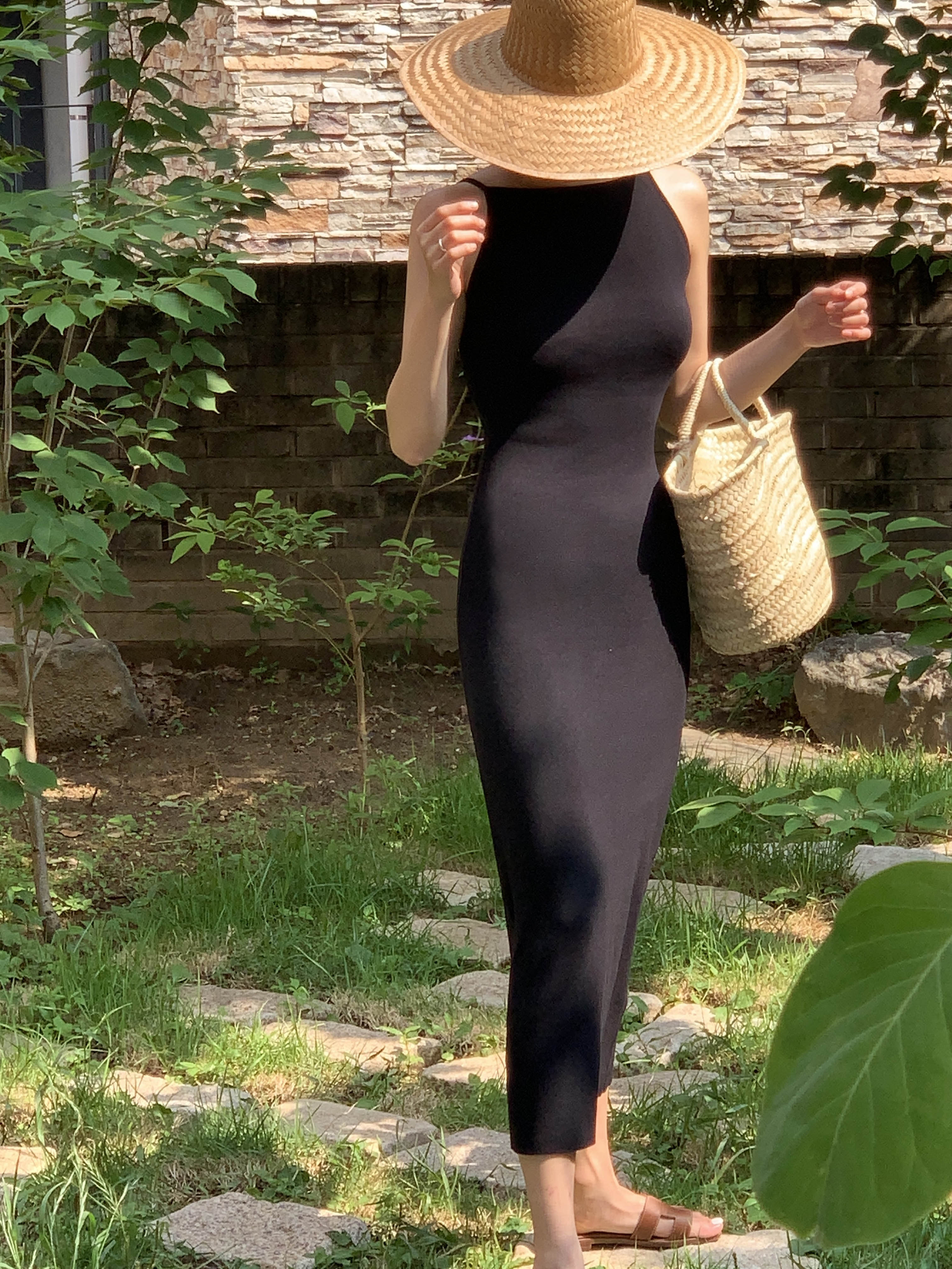 [단독] [NEW컬러추가✨][미니&롱&/누적10만장/MADE] 백리스 홀터넥 나시 니트 롱원피스 (3color) 하객룩/레이어드/휴양지원피스/휴양지룩/오프숄더