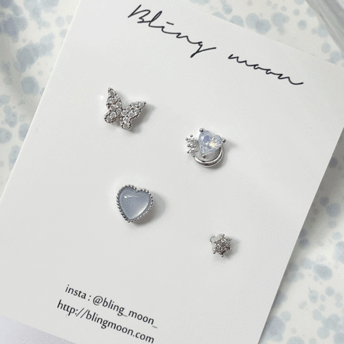 [4 set] 로맨스 블루 나비 피어싱 세트