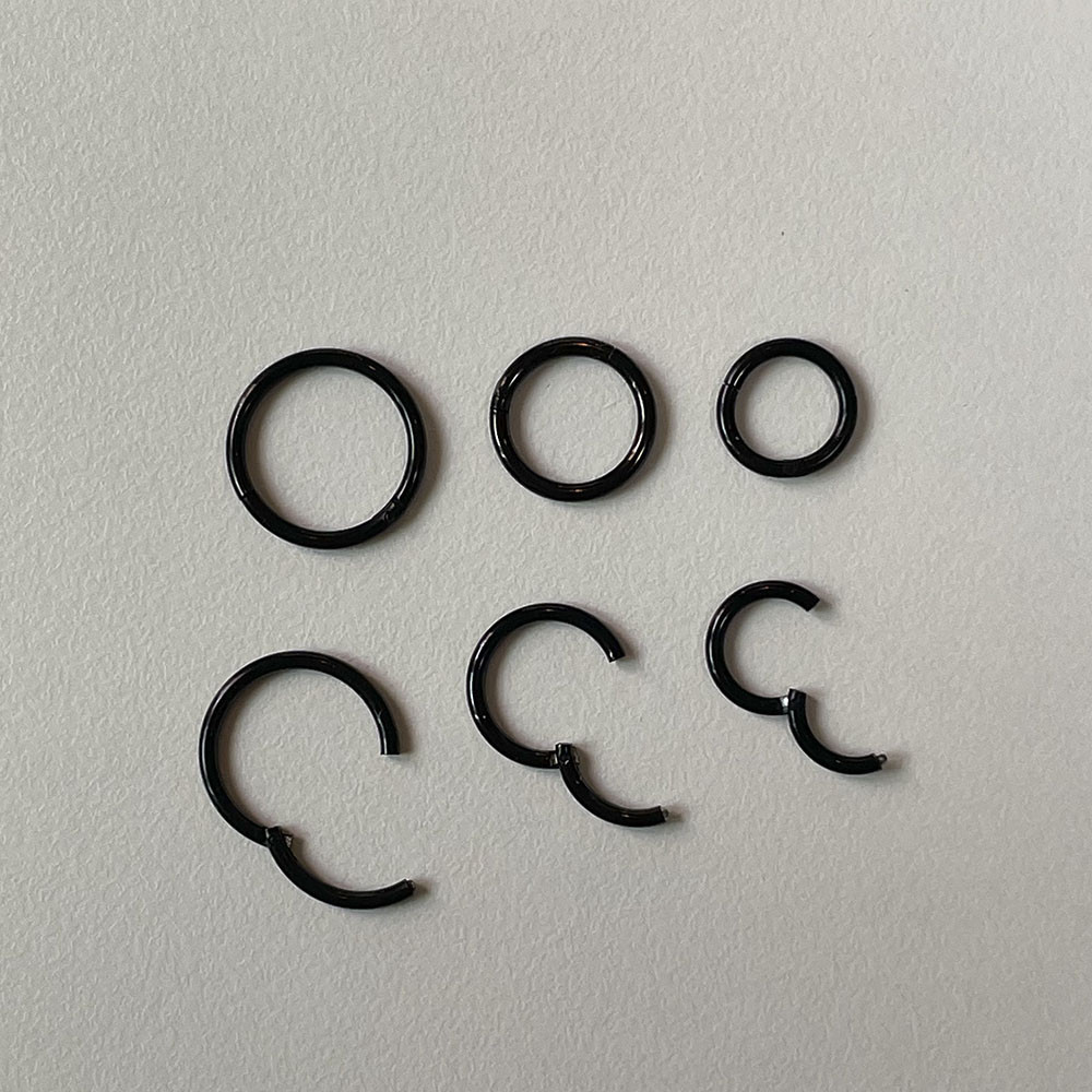 [1+1] 블랙 1mm 피어싱 연골 귓바퀴 원터치 미니링 6mm 8mm 10mm
