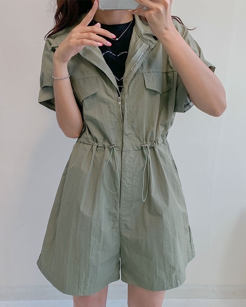 *꾸안꾸/캠핑룩* (3컬러) 아노락 스트링 숏 점프수트