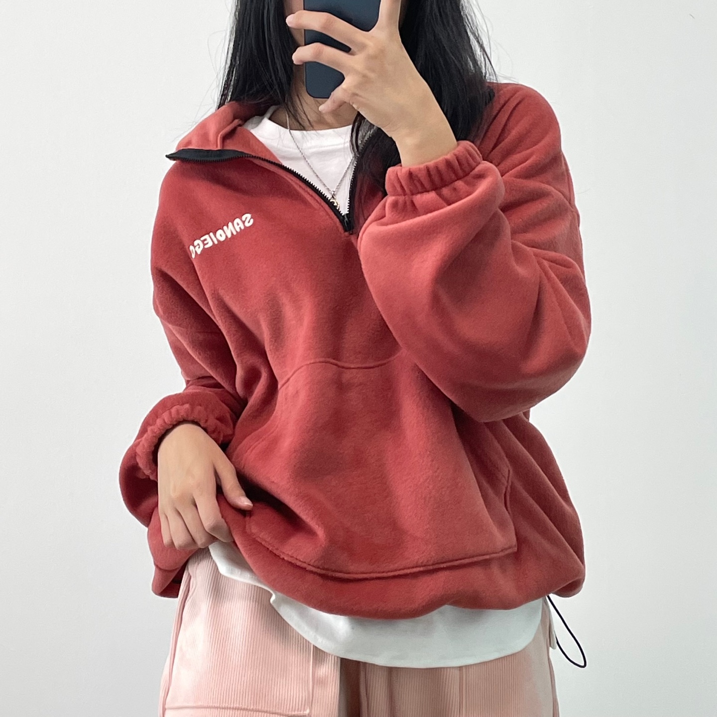 [1+1할인/국내제작/활용력甲/남녀공용] 샌디에고 반집업 오버핏 후리스 맨투맨 4color