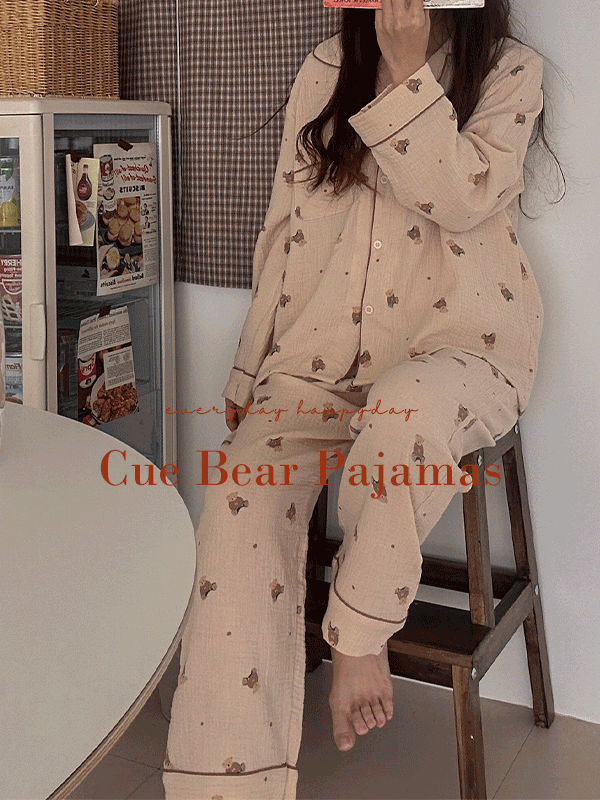 🧸요루면곰돌이🧸 H.made✔ 큐베어 잠옷 요루면 긴팔 커플 원피스 파자마 세트 2type 직진배송