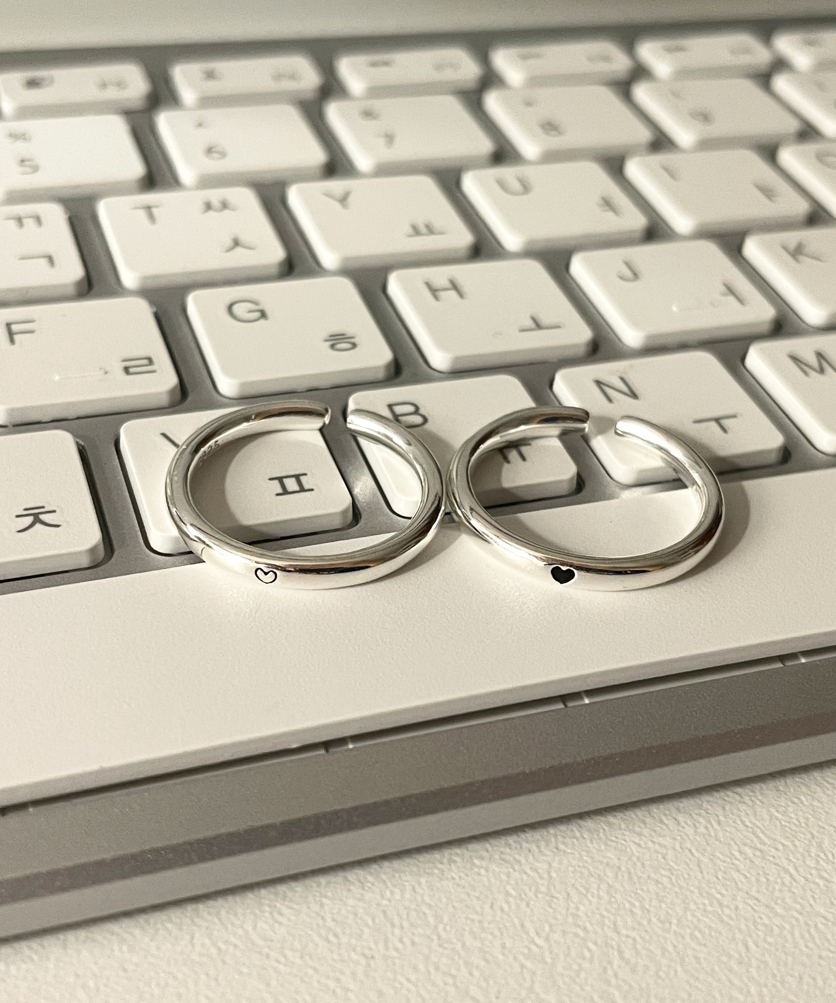 925 실버 하트 이모지 각인 순은 오픈형 엥게이지 엄지 학생 커플 우정 링 은 반지
