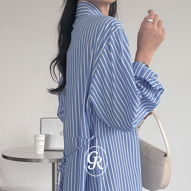 [~3XL/셔츠원피스] 스트라이프카라롱원피스 (2color)