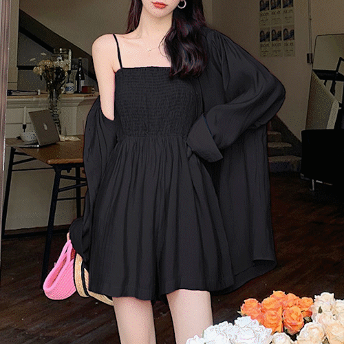 [여름세트/빅사이즈]끈 나시 스모크 가슴밴딩 A라인 주름바지 플리츠 스커트 대형 셔츠 투피스 큰사이즈 튜브탑 치마바지 점프수트 오피스룩 데일리 데이트룩 썸머 정장 3XL 4XL 코디