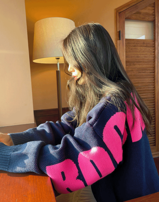 남녀공용 로켓맨 자가드 라운드넥 오버핏 니트 스웨터 (네이비/블랙/레드)