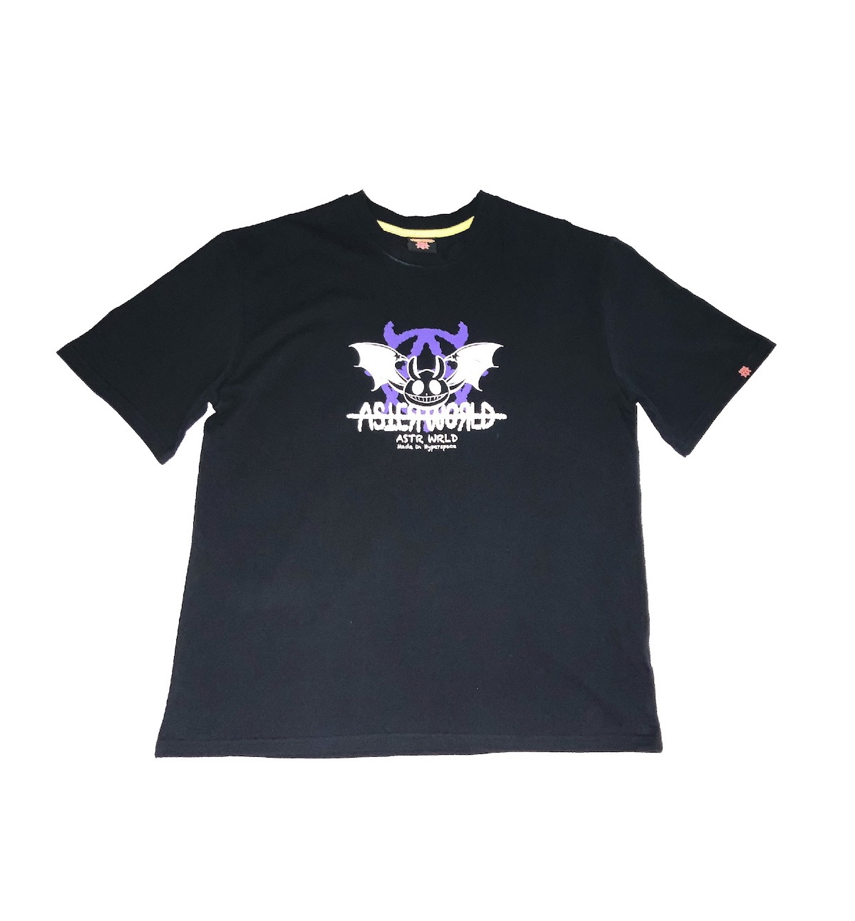 아스테르월드 키키 날개 로고 반팔 티셔츠 (블랙 / 퍼플 로고)