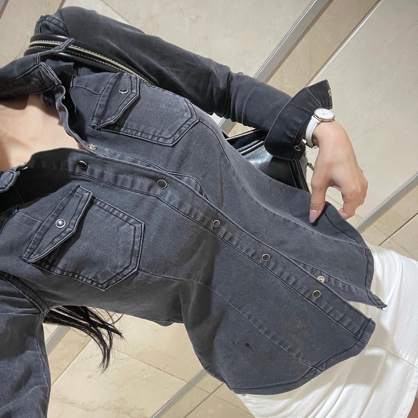 [ *L,m,s당일*3ver 국내 / 유니크 S~XL ] 켈란 슬림핏 스판 흑청 데님 셔츠 one color