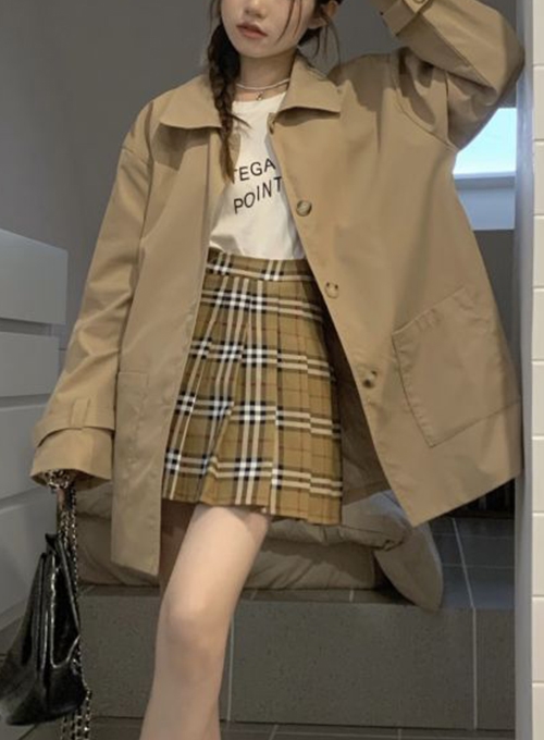 [하프/롱] 클래식 복고 트렌치 반 코트 폴로 카라 넥 봄 가을 루즈 핏 포켓 러블리 하객룩 결혼식룩 자켓