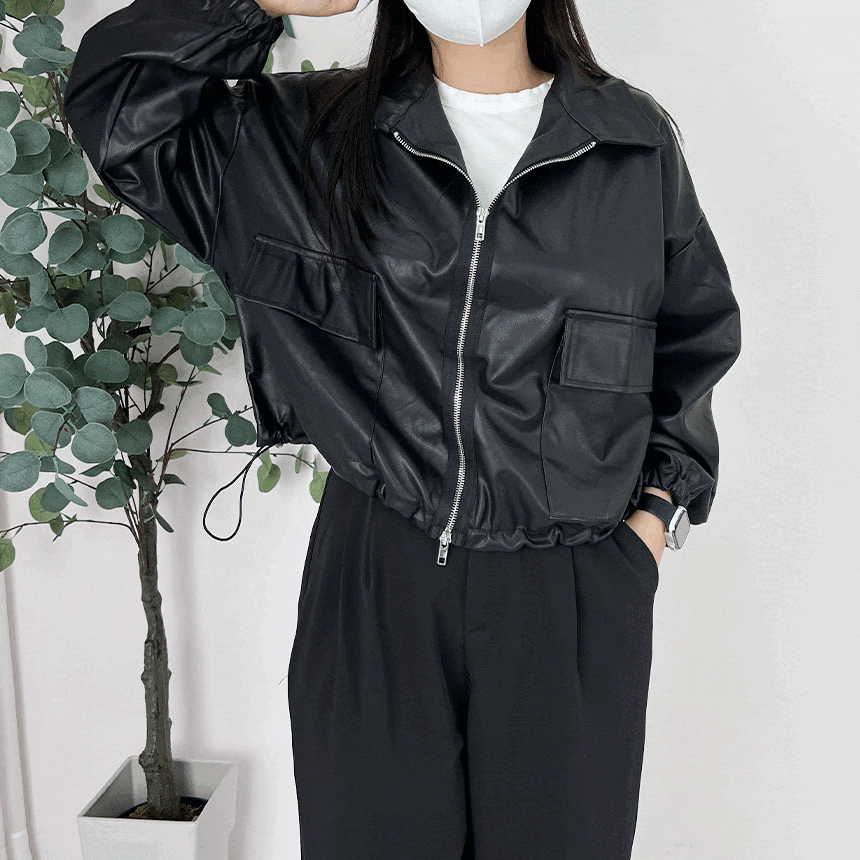 부들부들한 투웨이 투자크 레자 레더 가죽 자켓 숏자켓 점퍼 허리 스트링 간절기 루즈핏 박시핏 빅사이즈 플러스사이즈 3color