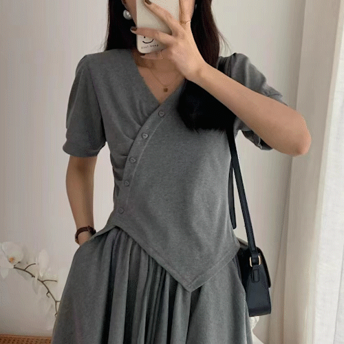 [여름신상/빅사이즈]루즈핏 회색 반팔 셔츠 언발 나비 트임 가디건 밴딩 치마바지 대형 투피스 세트 추리닝 꾸안꾸 큰사이즈 주름치마 여름 통통이 데일리룩 3XL 4XL 코디