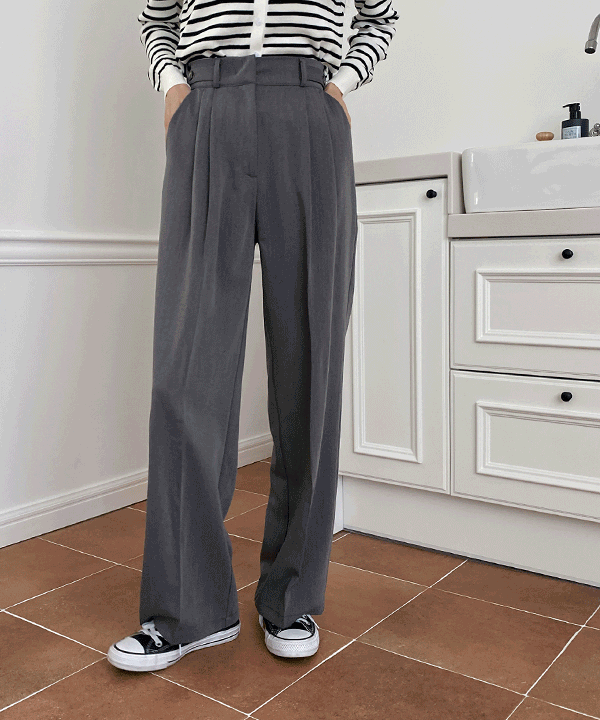 [플러스사이즈~XL] 설레는핏 비조 버튼 핀턱 와이드 슬랙스 -4color