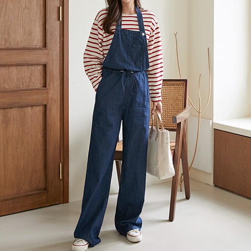 진청 연청 여자 와이드 데님 청 오버롤 멜빵바지 홀터넥 멜빵 청바지