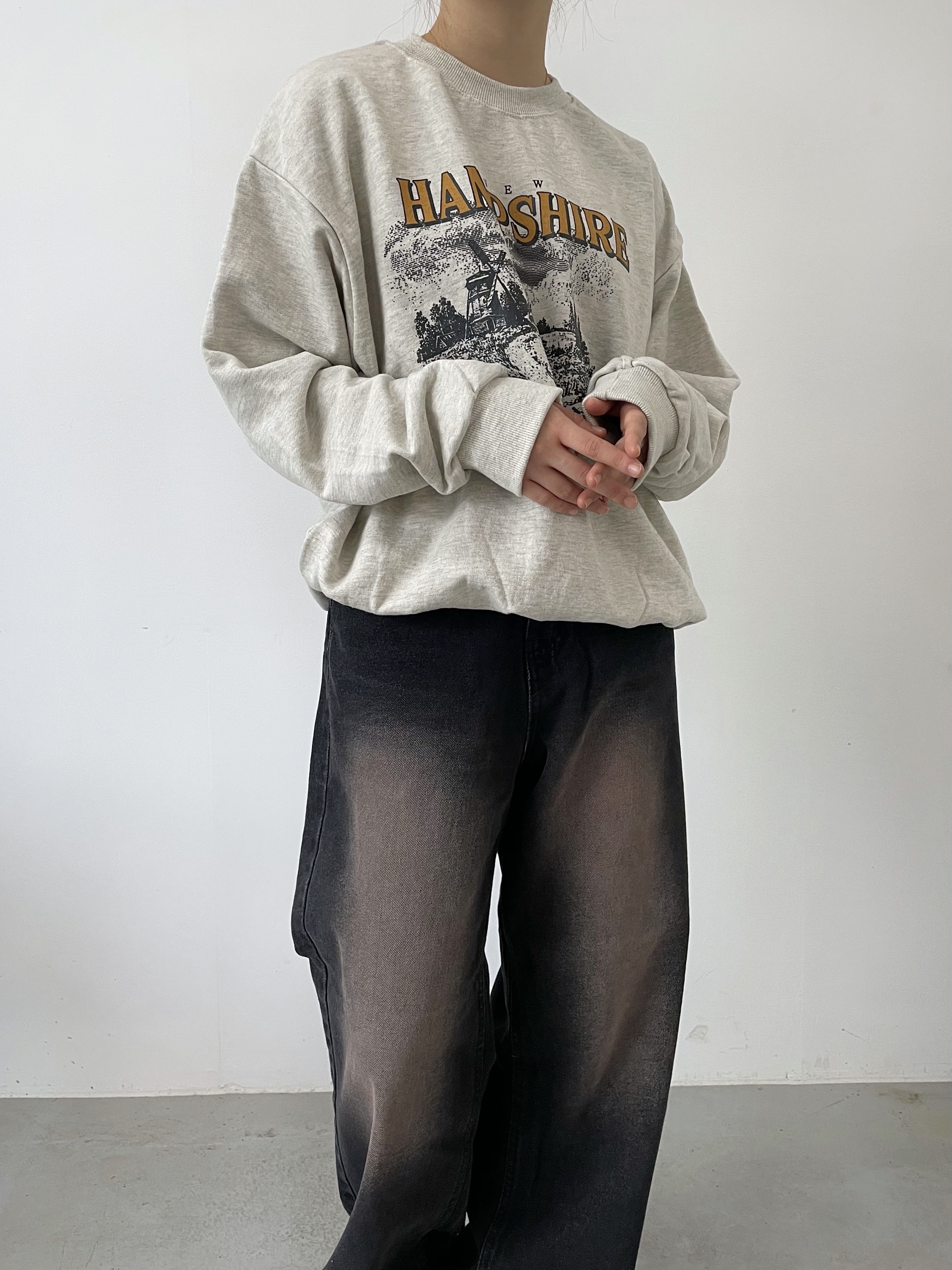 [아메카지/3단쭈리] 레터링 프린팅 오버핏 빈티지 맨투맨
