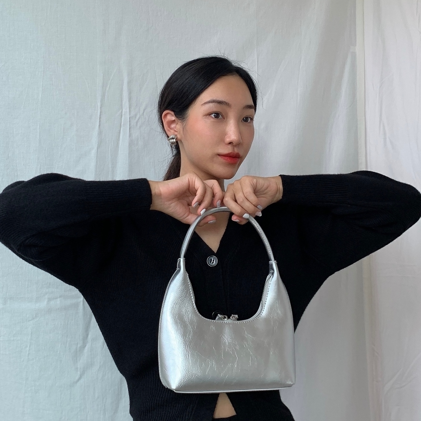 [당일출고] 글로시 실버 블랙 미니 토트백 호보백 휴양지 여름 가을 겨울 여행 실버백 포인트가방 (3col)