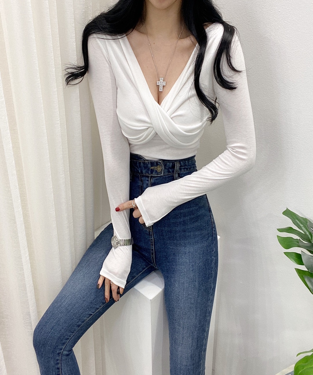 [당일발송] 나비 랩 셔링 긴팔 티셔츠