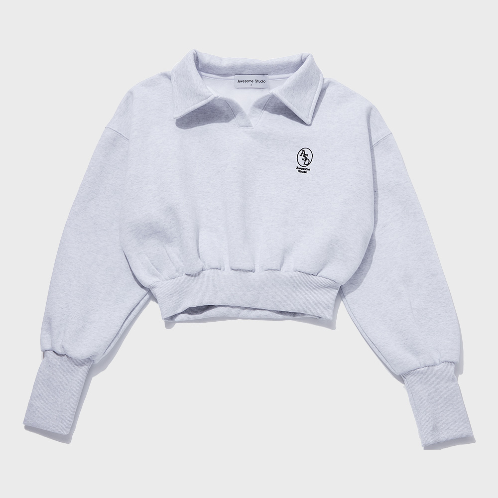 우먼스 카라 크롭 스웻셔츠 화이트그레이
