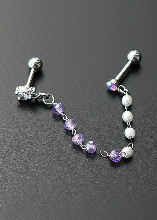 써지컬스틸 크리스탈 진주 반반 체인 투핀 바벨 피어싱 P-0355
