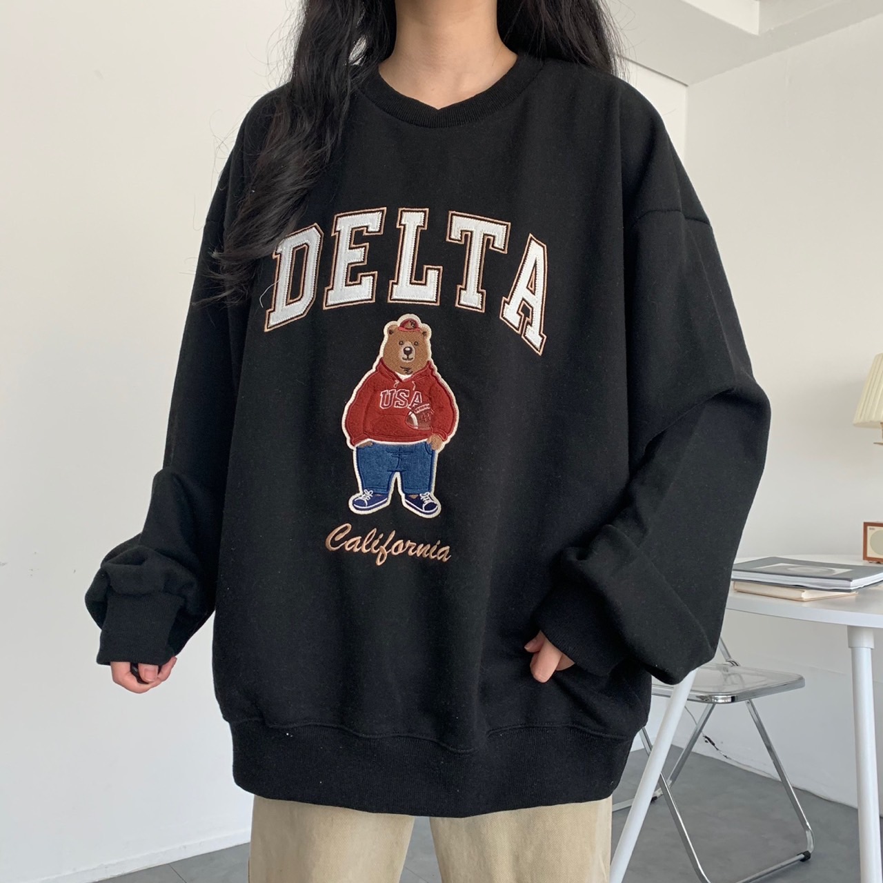 [1+1할인/국내제작/고퀄리티/남녀공용/커플룩찐-강추] 델타 곰돌이 오버핏 쭈리 맨투맨 3color