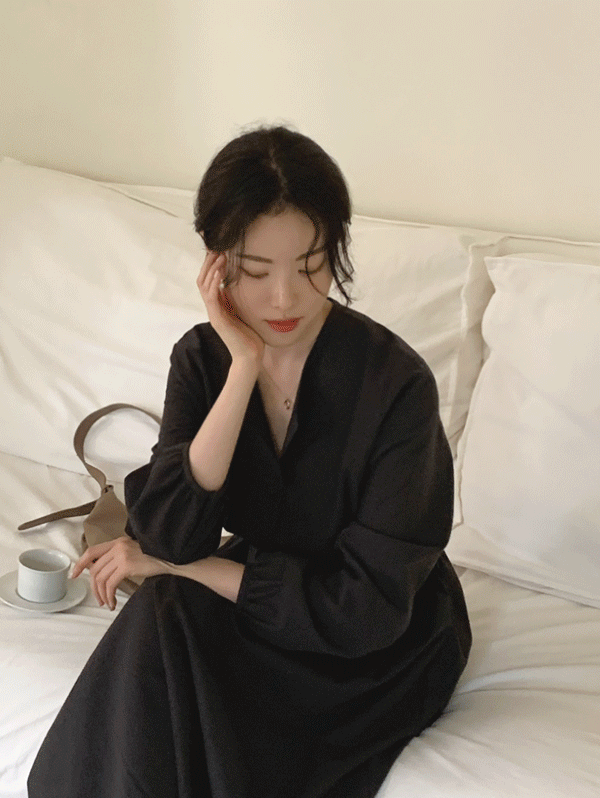 마임 단추 포인트 롱 원피스 [챠콜,크림]