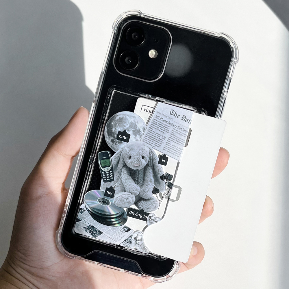 (카드탱크) 러블리 토끼 . 투명 범퍼 교통 카드 수납 아이폰 핸드폰 실리콘 케이스 미니 14 15 16 16e SE4 17 프로 맥스 갤럭시 S23 S24 울트라 엣지 친구 생일
