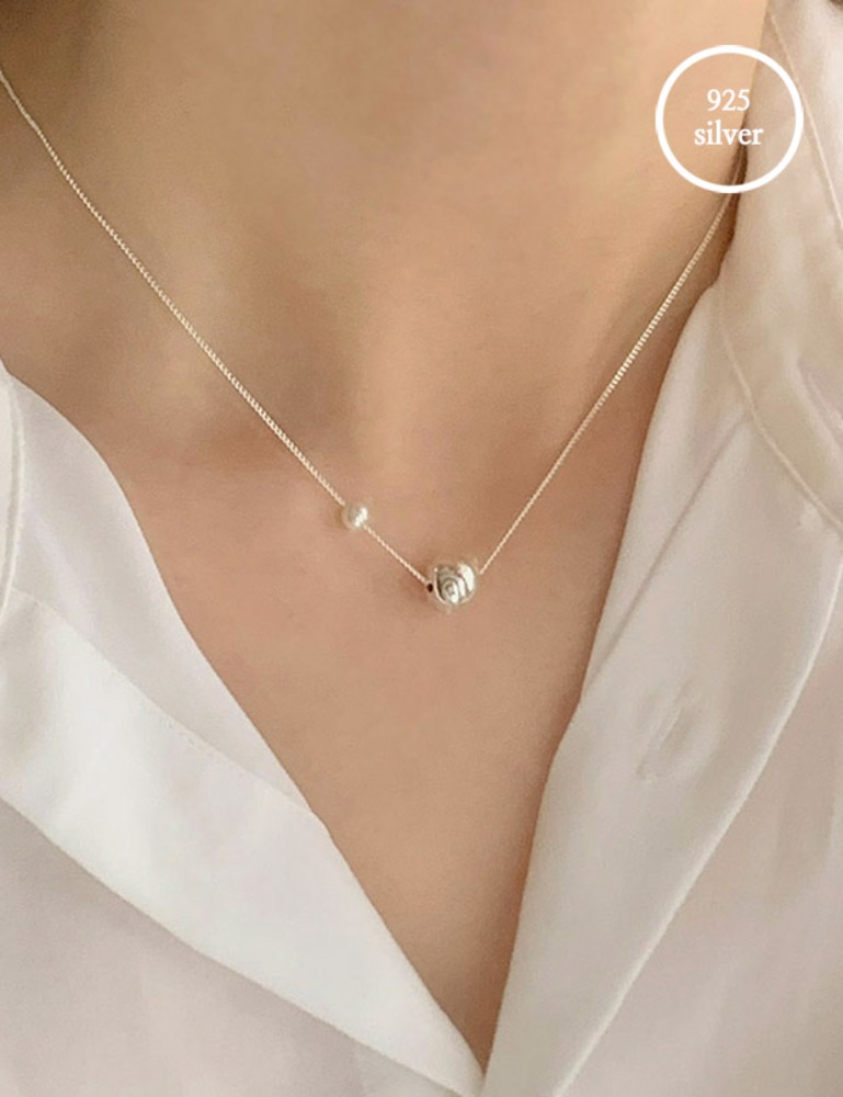 [쿼먼트] 은볼 미니 스왈 진주 체인 은 목걸이 (실버925, 18k골드)