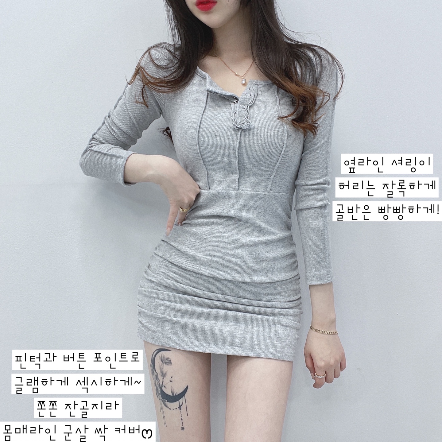 *몸매짱!*[섹시글램/모델강추!]쭉빵 핀턱라인 버튼 잔골지 옆셔링 미니 원피스