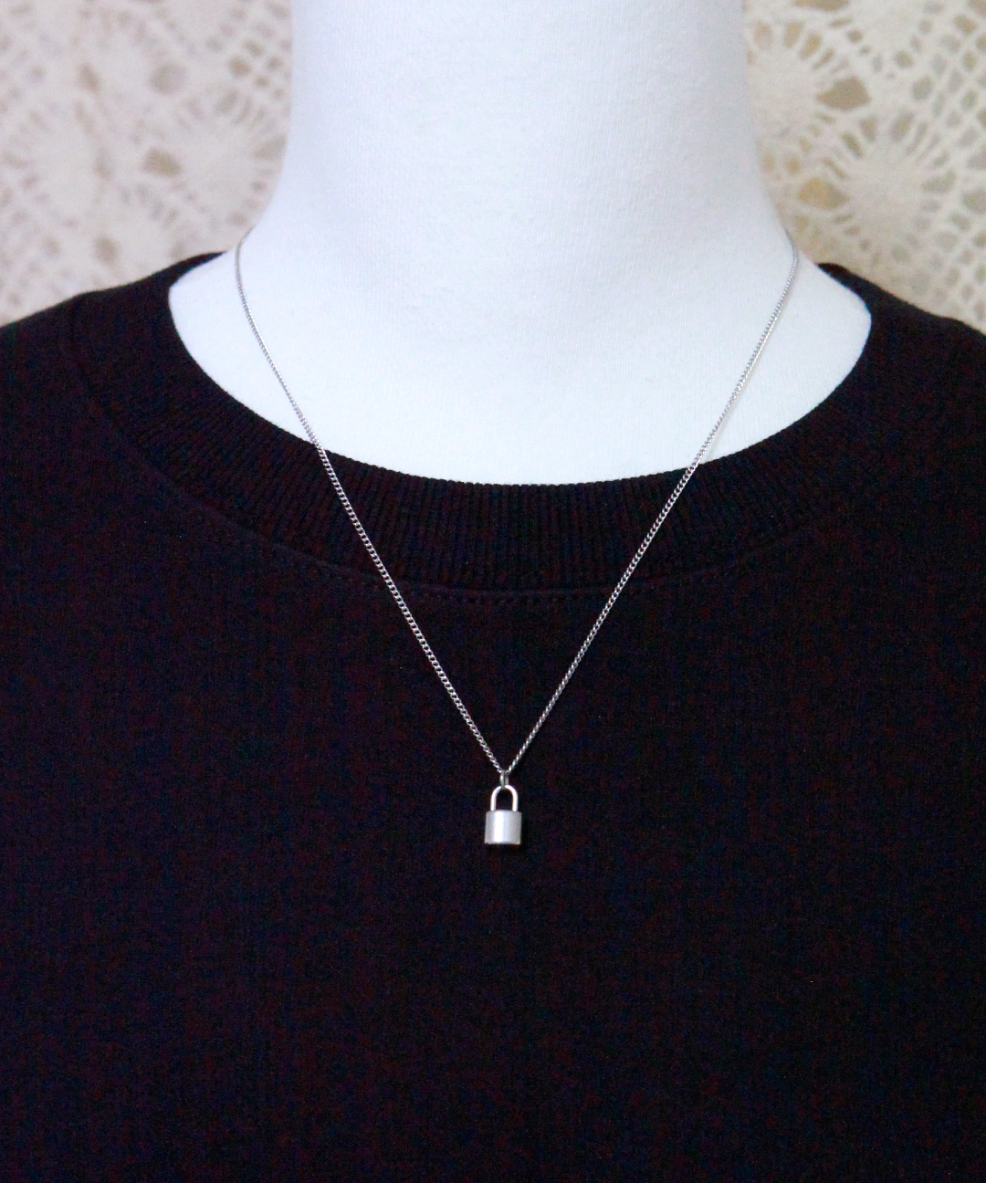 남녀공용 심플 자물쇠 써지컬스틸 목걸이