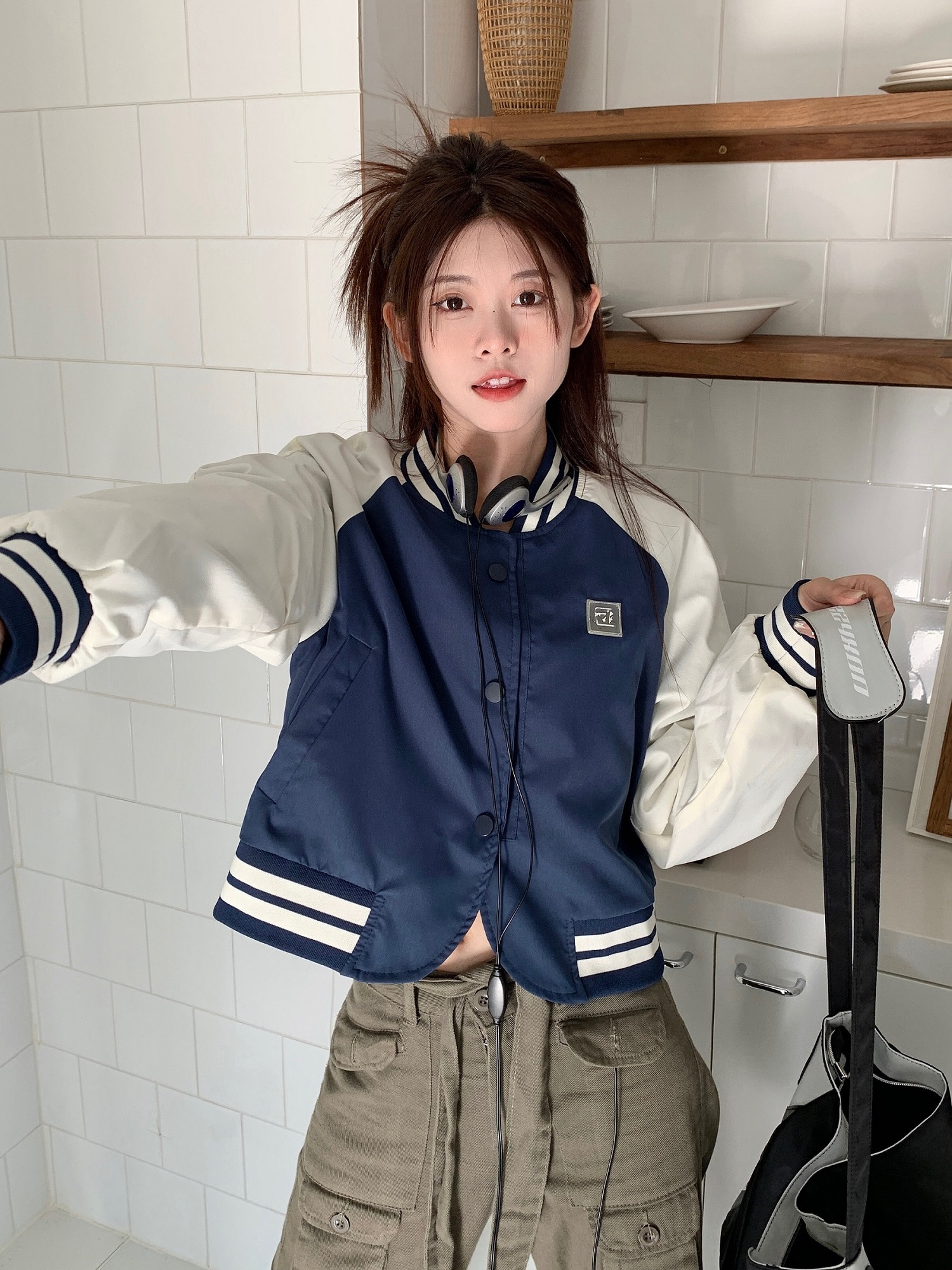 스포티 개강룩 간절기 밑단 밴딩 나그랑 라운드 앞트임 세미크롭 야구 유니폼 바람막이