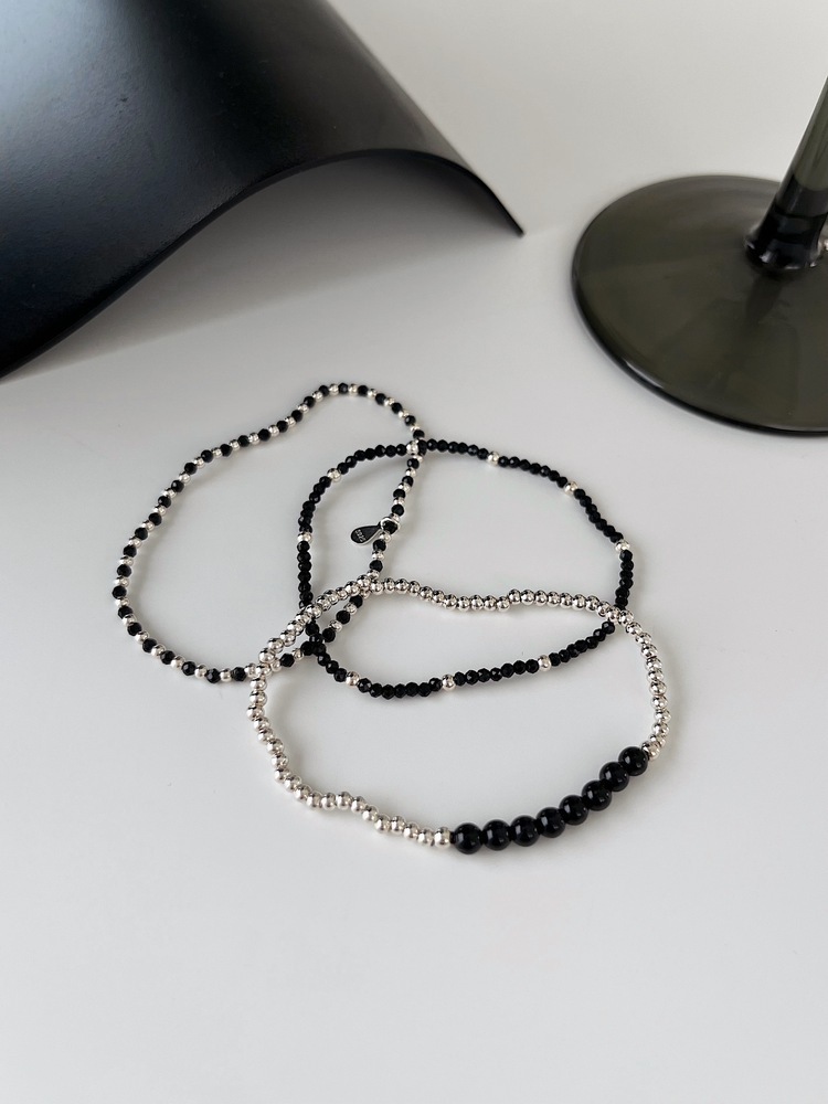 [실버925] 블랙 비즈 믹스 실버 볼 밴딩 팔찌 (3type)