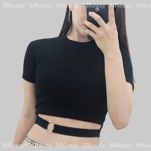 [당일배송] 링 포인트 무대 공연 섹시 반팔 크롭티셔츠
