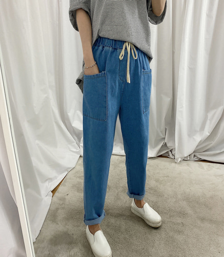 여성 청 배기바지 빅포켓 데님 배기팬츠