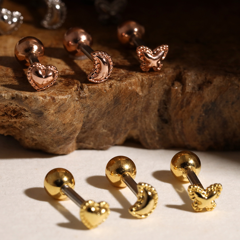 퀼팅 나비 달 하트 써지컬스틸 피어싱 (귀걸이로 변경가능)